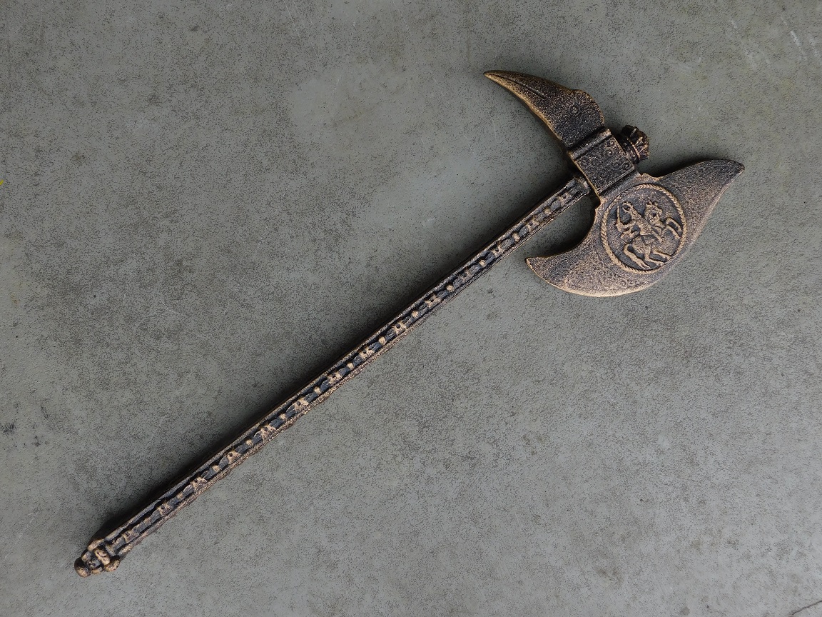 Hoewel deze middeleeuwse strijdbijl geen functioneel wapen is, voegt het een dramatisch visueel element toe aan elke ruimte.