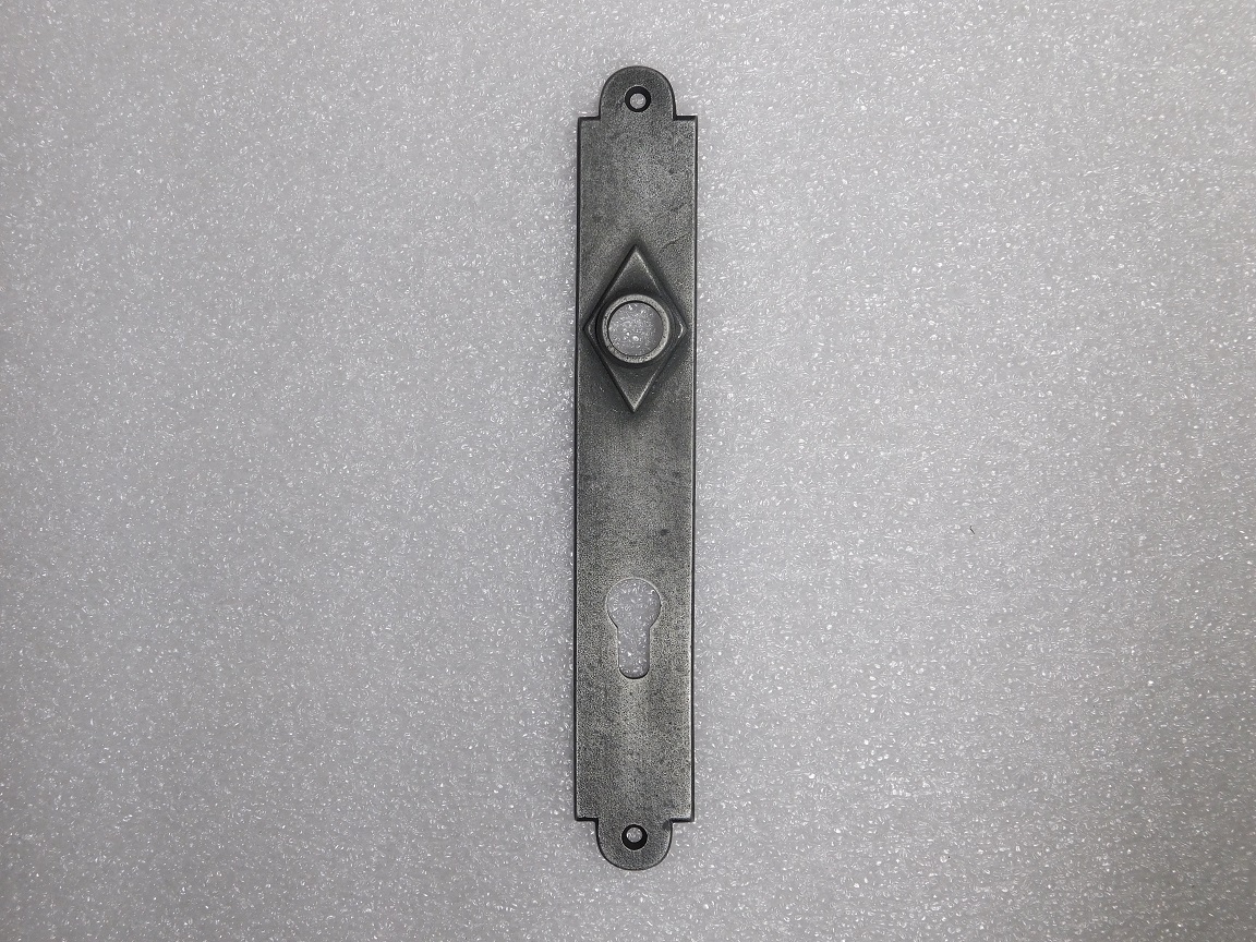 Dankzij het gebruik van massief gietijzer voelt deze deurplaat solide en zwaar aan – precies zoals je mag verwachten bij authentiek deurbeslag.