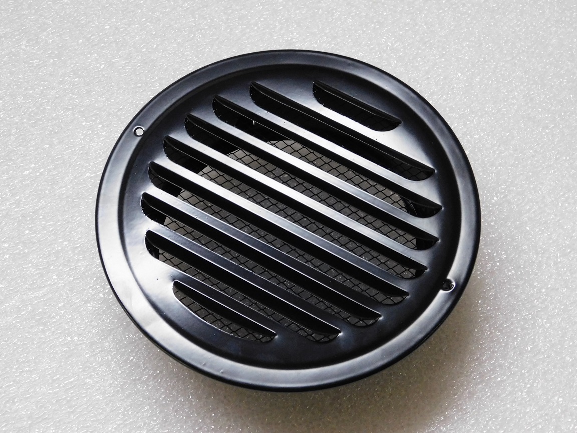 Stijlvol en functioneel: dit ronde luchtrooster met een diameter van ca. 19 cm is gemaakt van duurzaam zwart metaal en voorzien van gaas.