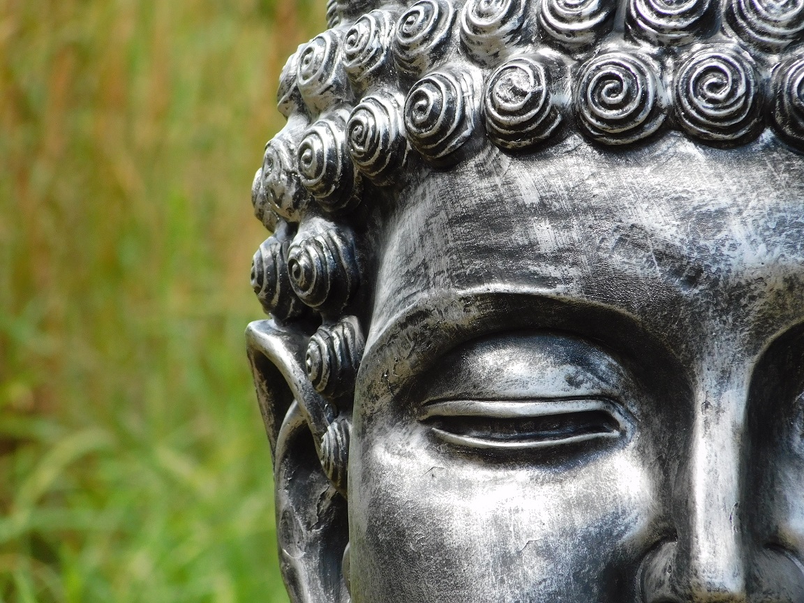De lange oorlellen verwijzen naar de zware oorbellen die prins Siddharta droeg en die hij heeft afgelegd toen hij een eenvoudig leven ging leiden.
