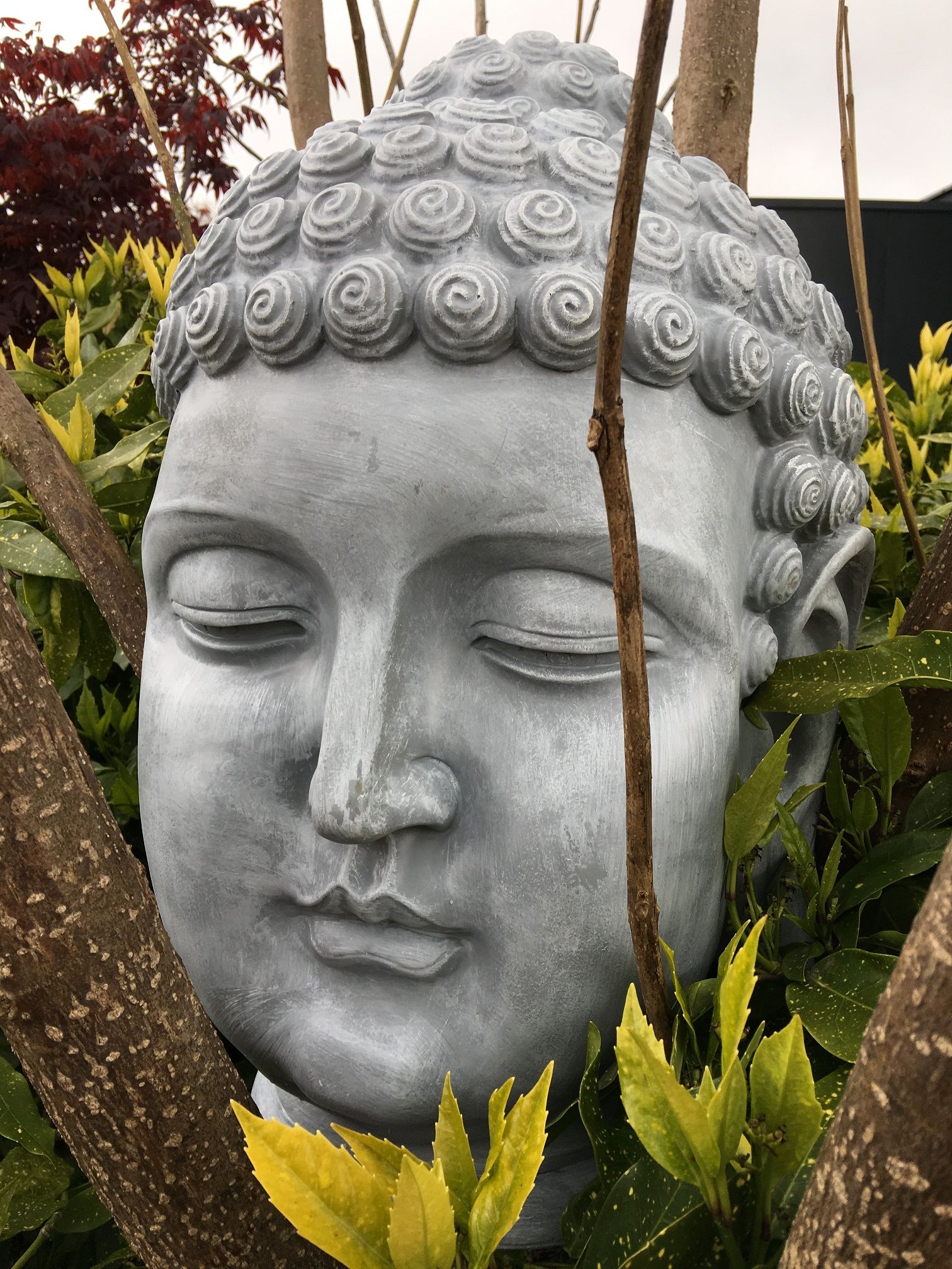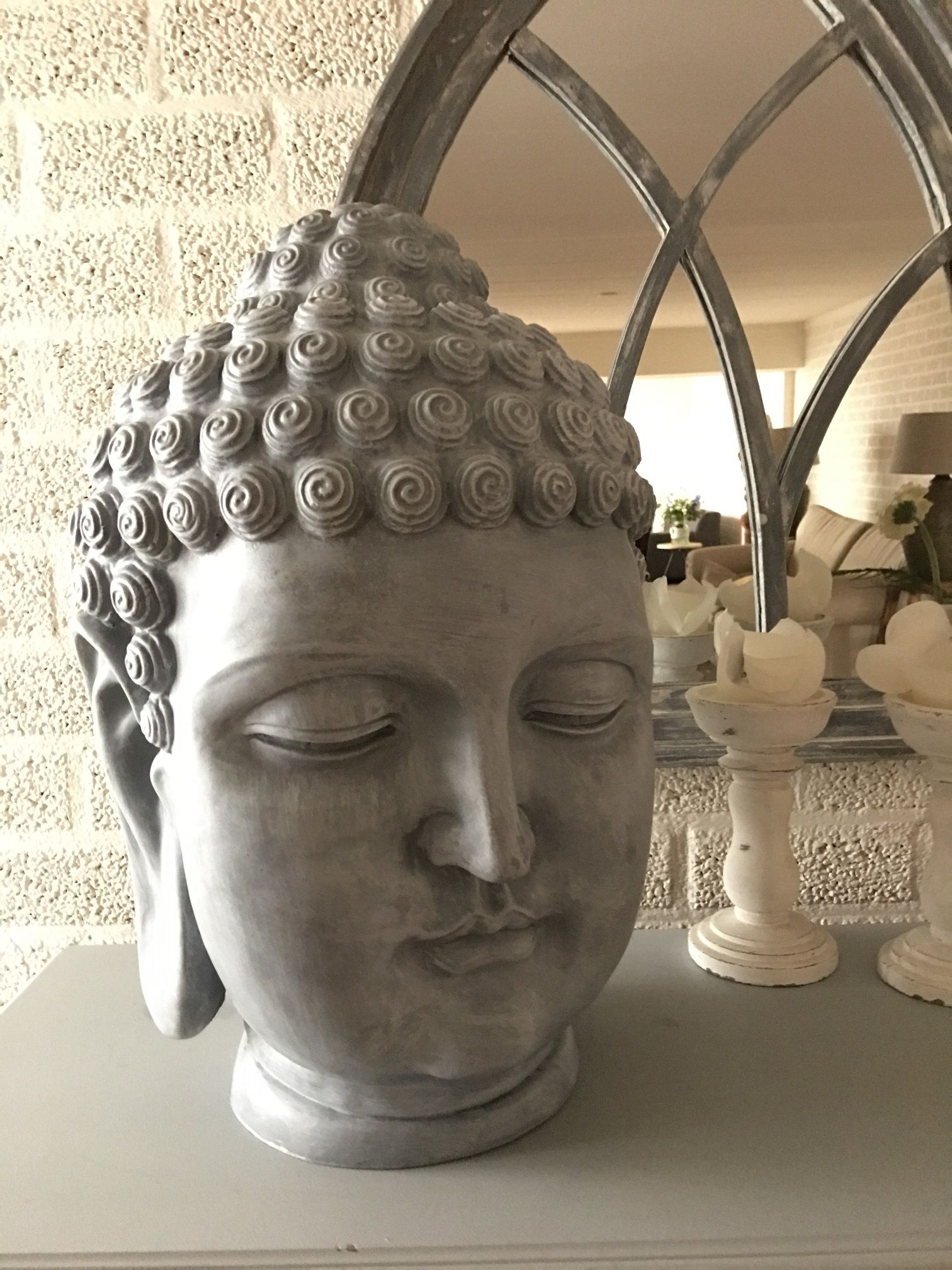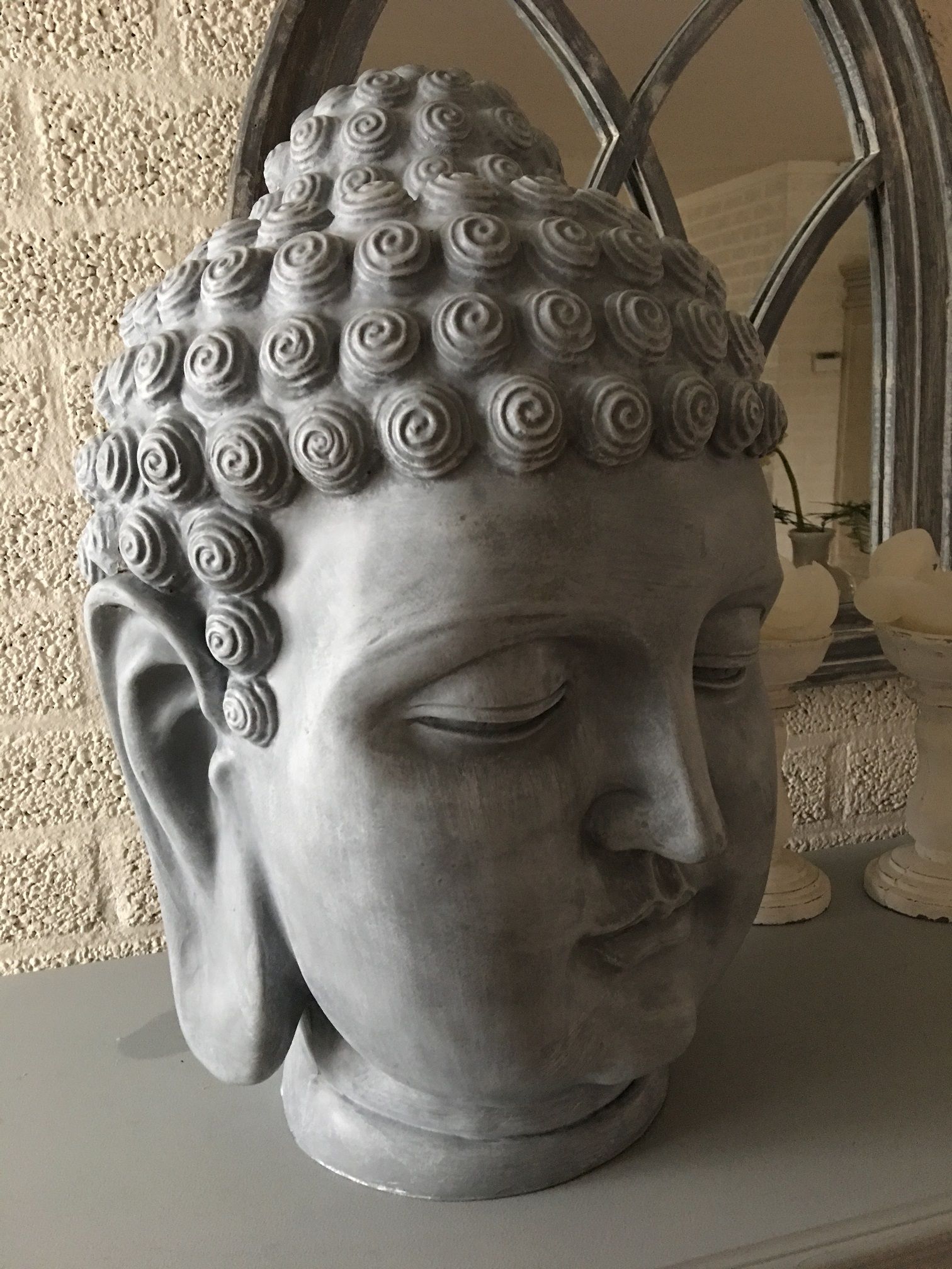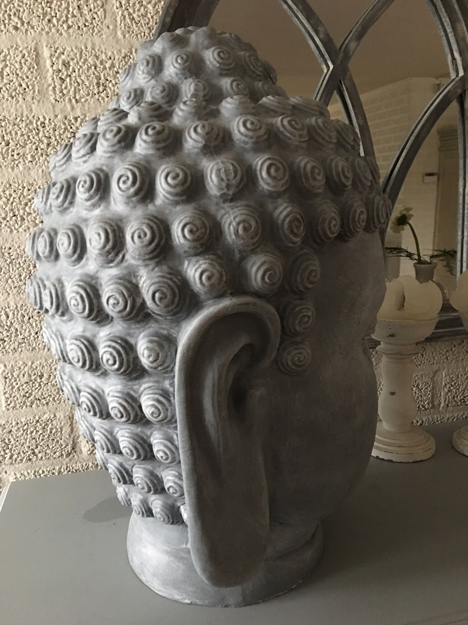 Boeddha-hoofd, polystein-beton-look!!
