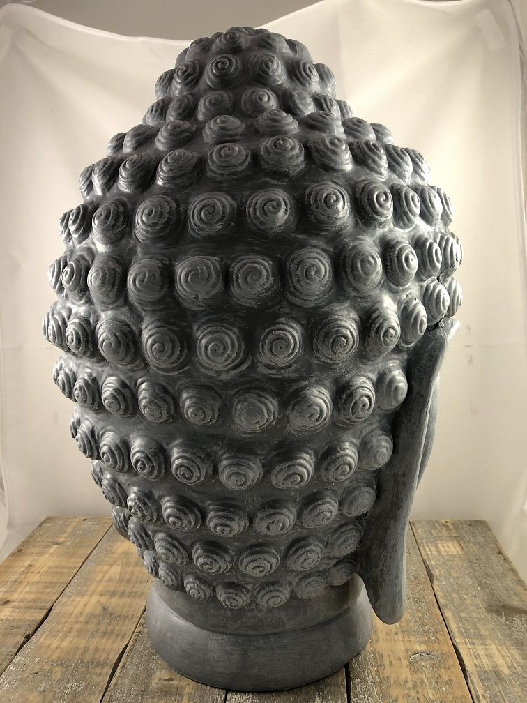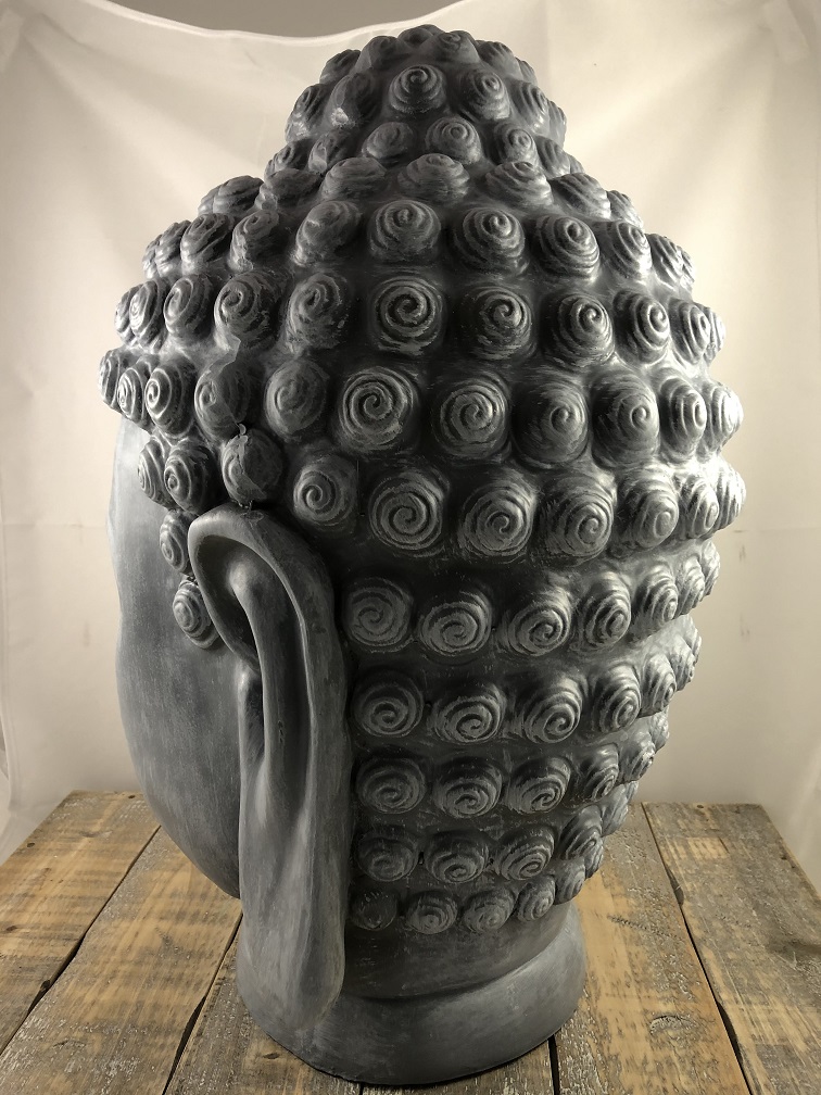 Indonesische Boeddha-hoofd, polystein-beton-grijs!!