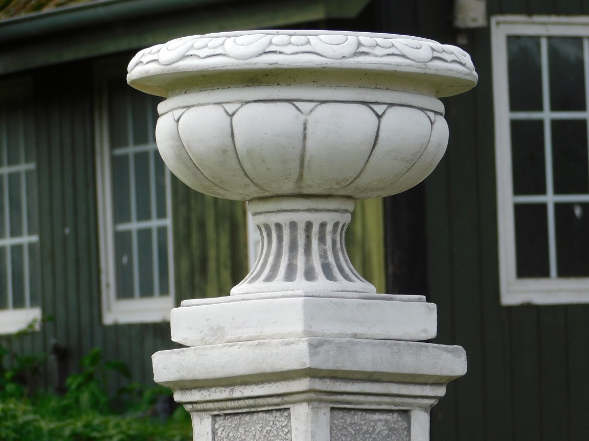 Voeg een vleugje klasse en schoonheid toe aan uw buitenleven met onze ronde bloempot op sokkel set.