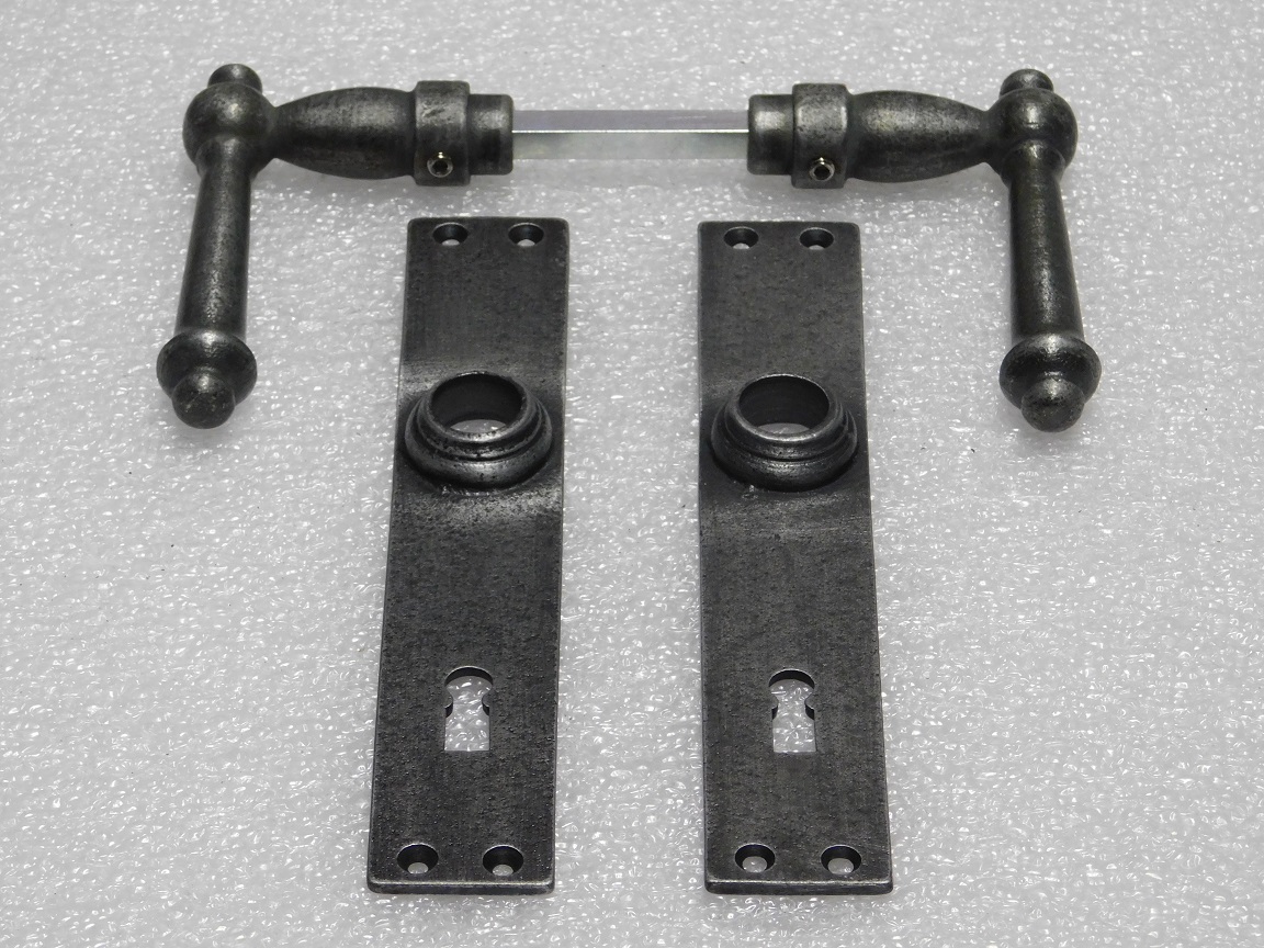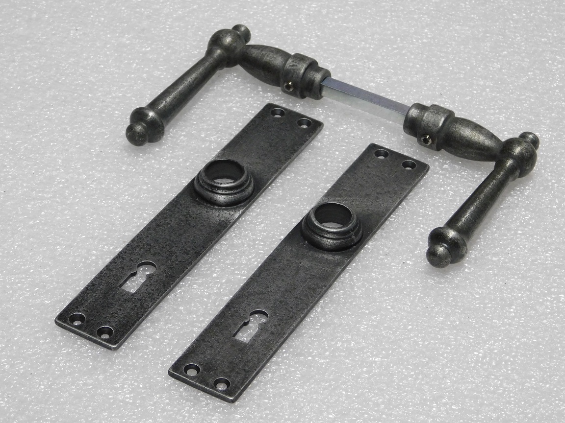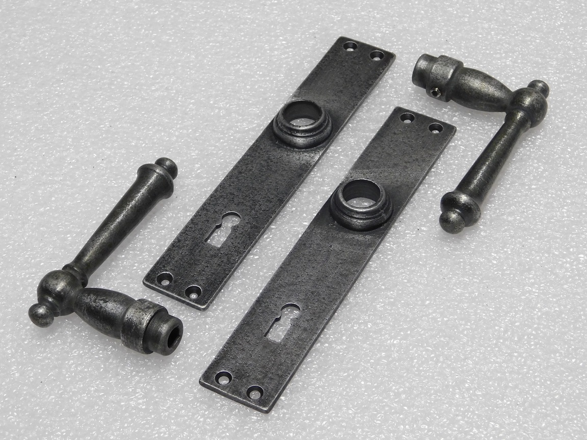 Deze complete set deurbeslag York combineert stijlvolle York deurklinken met lange deurplaten (blanco) van verzinkt gietijzer