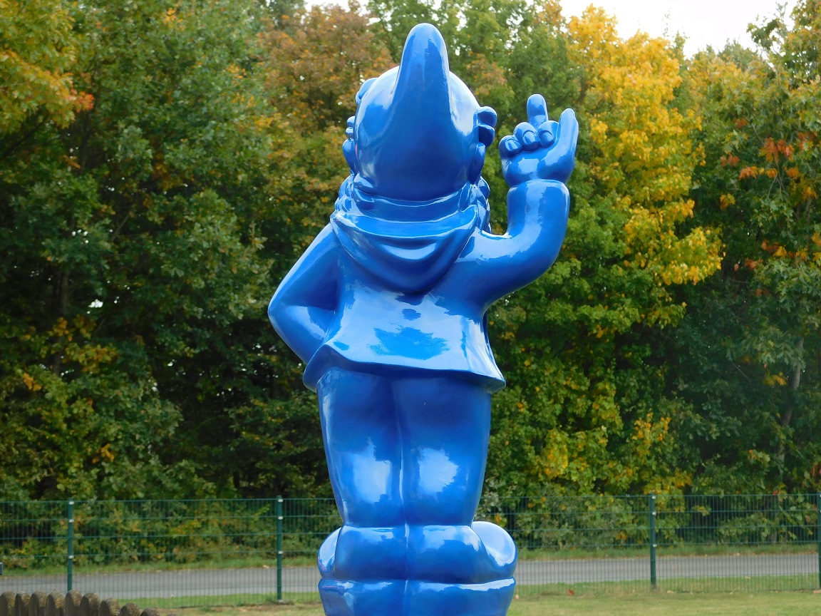 Geef je interieur of tuin een grappige twist met deze Tuinkabouter Middelvinger XL – 80 cm – Blauw.
