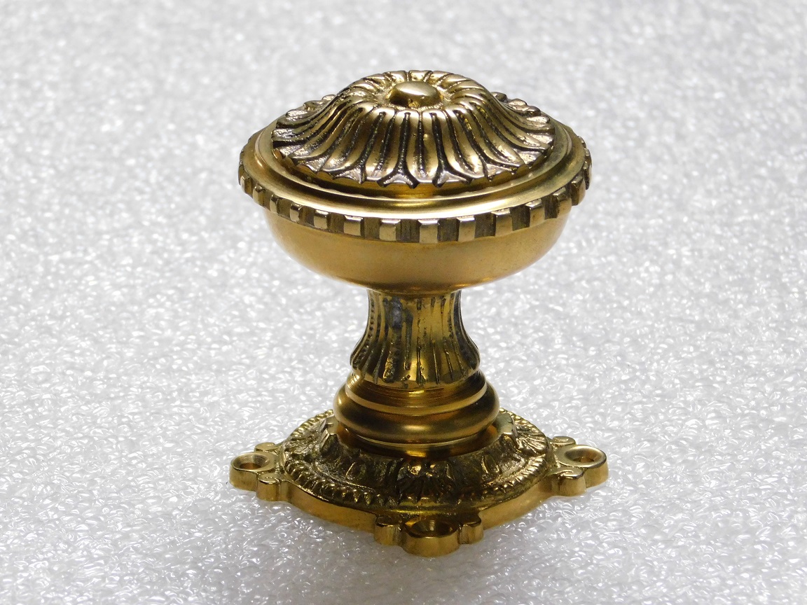 De rijk gedetailleerde knop met sierlijke lijnen en het decoratieve rozet geven een authentieke, tijdloze uitstraling.