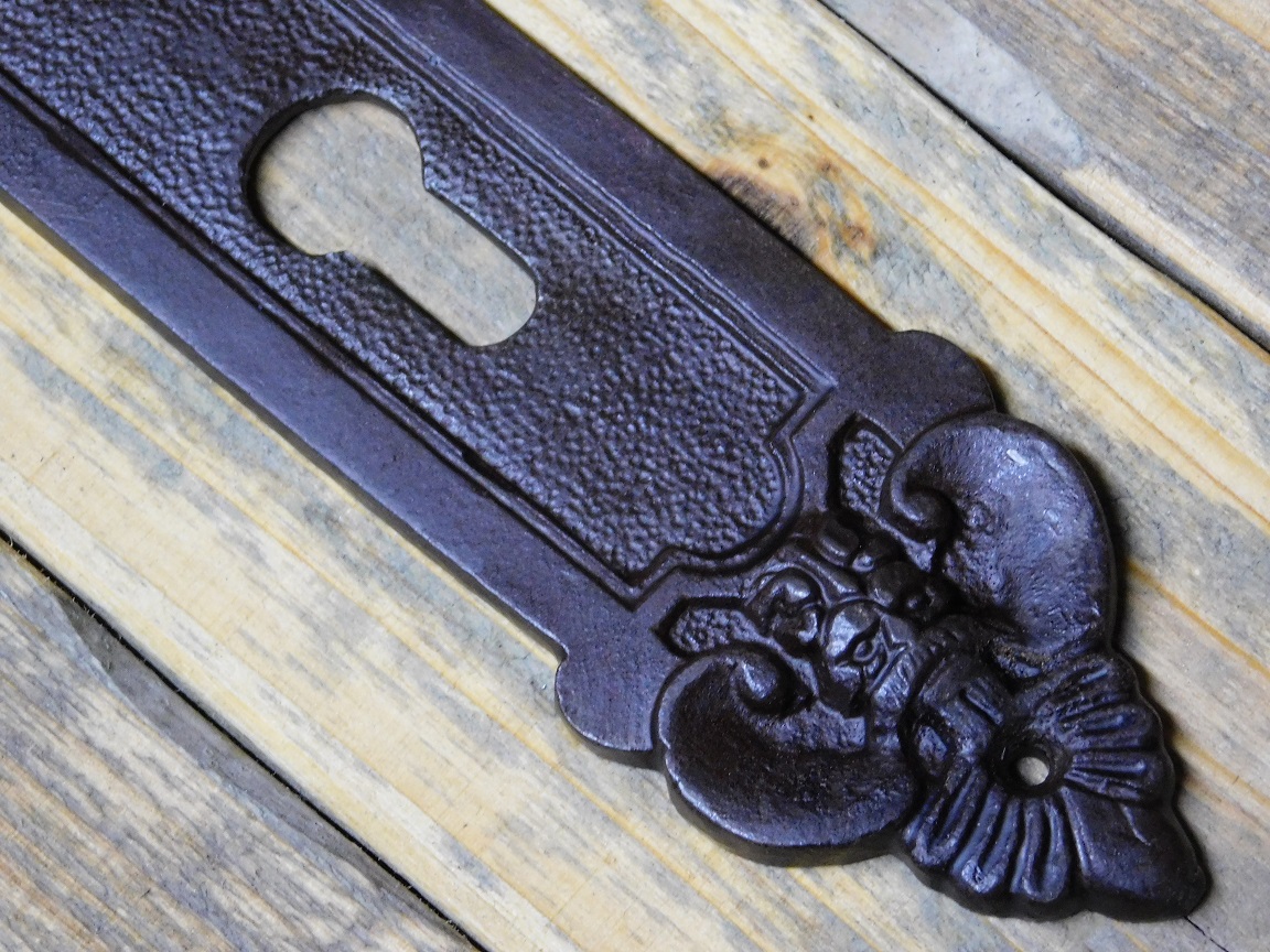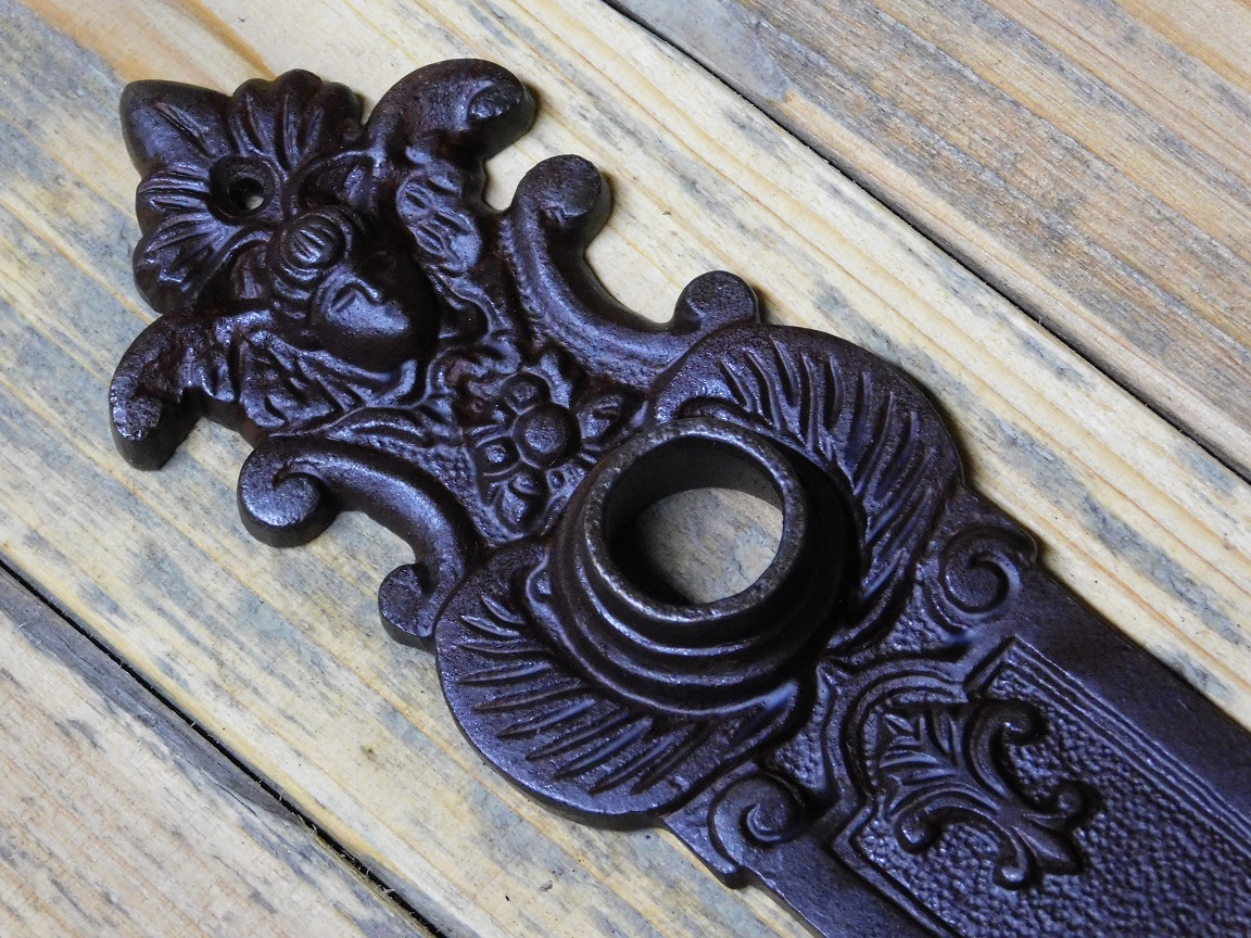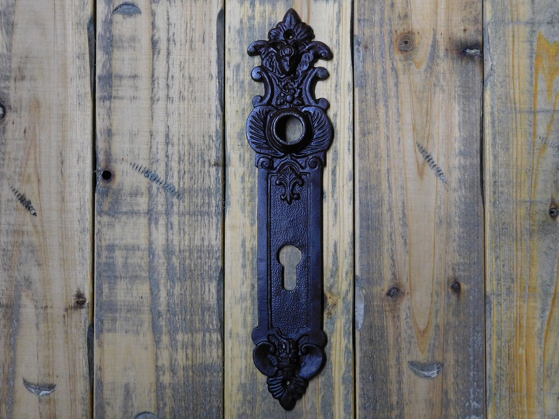 Geef je deur direct een unieke, klassieke uitstraling met deze prachtige vintage deurplaat van massief gietijzer.