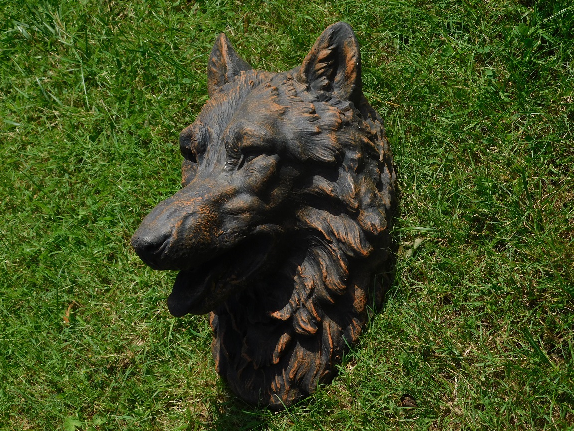 De wateruitloop maakt dit beeld perfect als wandornament – het water lijkt rechtstreeks uit de bek van de wolf te stromen.