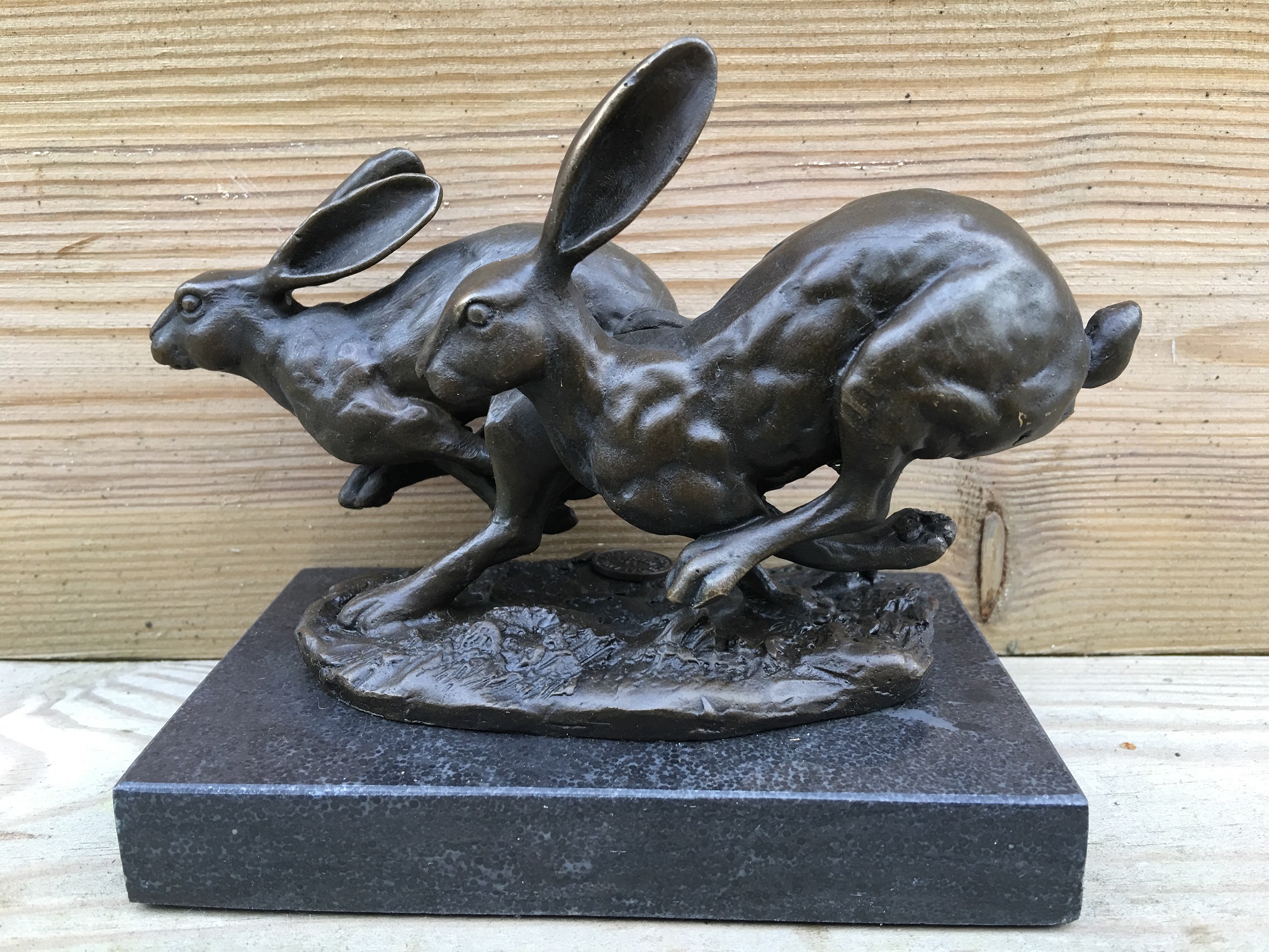 Dit bronzen beeld van een haas is een mooi cadeau of geschenk voor een liefhebber van hazen. prachtig beel om te zien, ze de foto's.