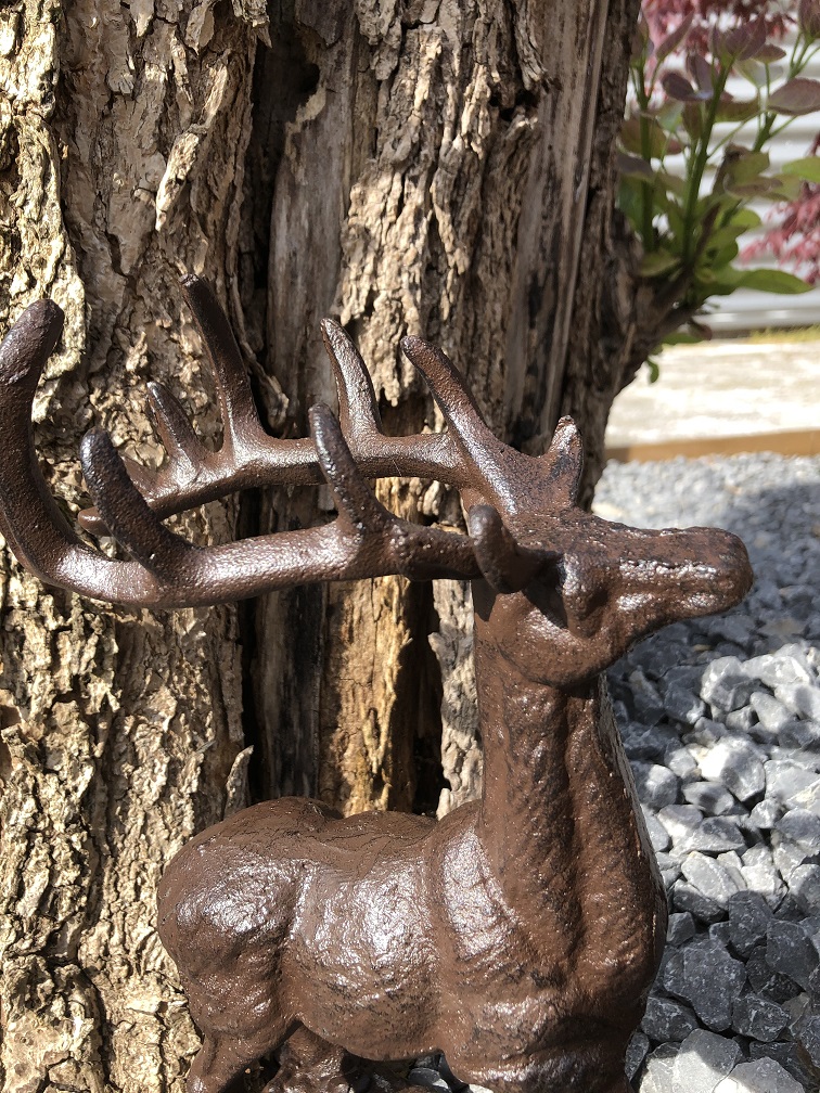 Levering: 1 x beeld hert gietijzer bruin.