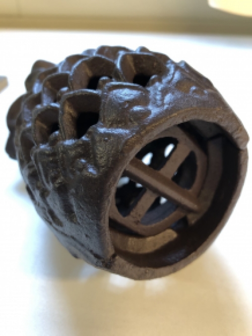 Mooi ontwerp deze gietijzeren ananas als storm lantaarn, sfeerlantaarn. Door de perforatie en het ontsteken van een kaarsje geeft