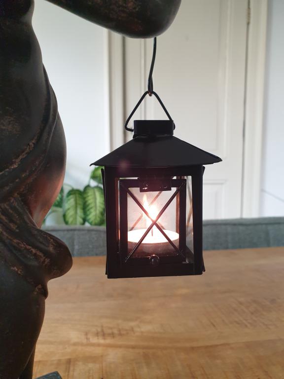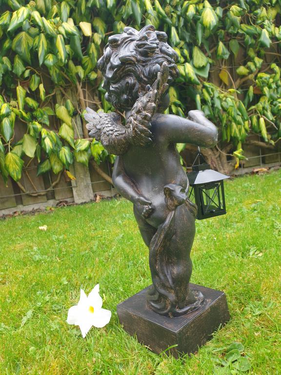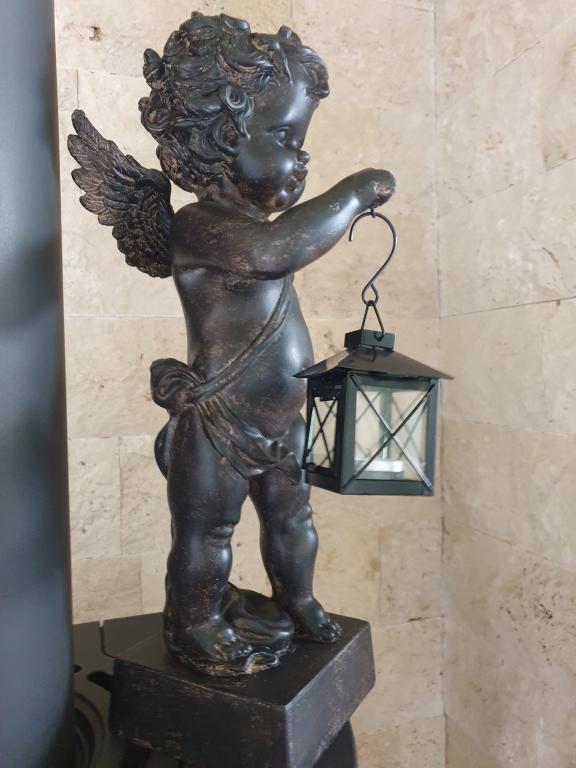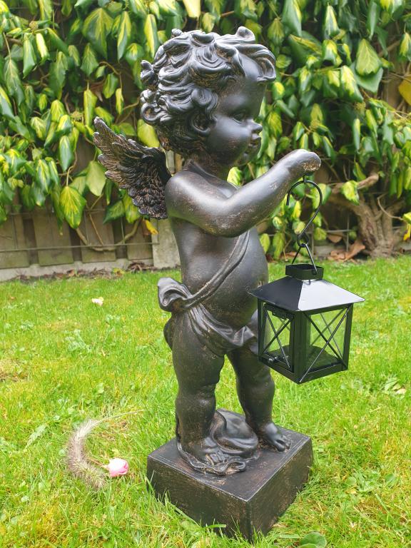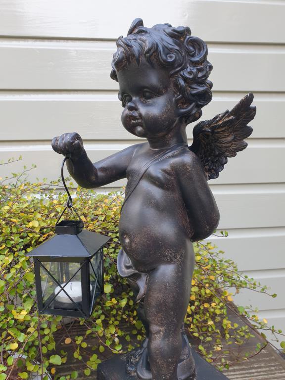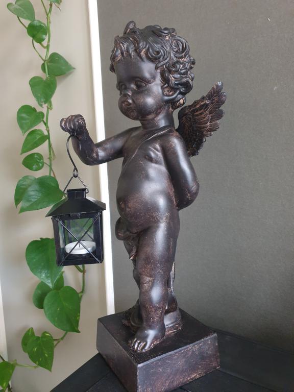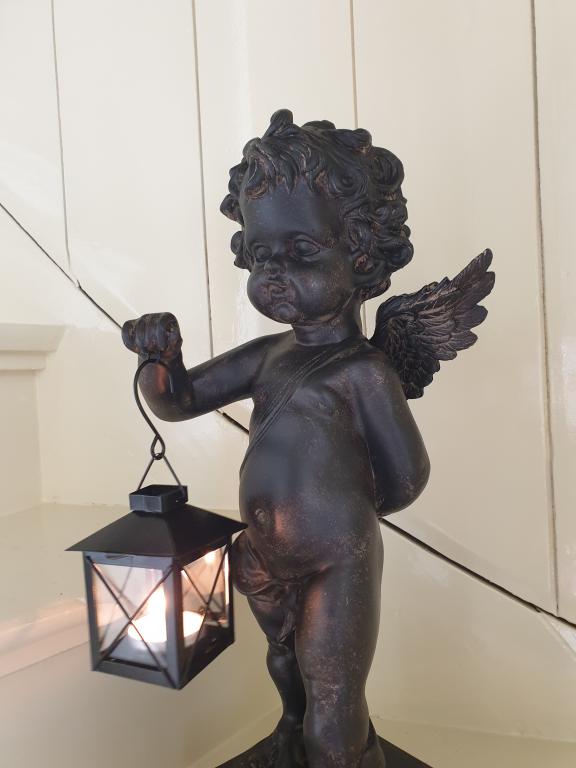 Met haar sierlijke vleugels en een glinsterende lantaarn in de hand ( waar een waxine kaarsje in kan ,waakt zij over liefde, licht en tederheid.