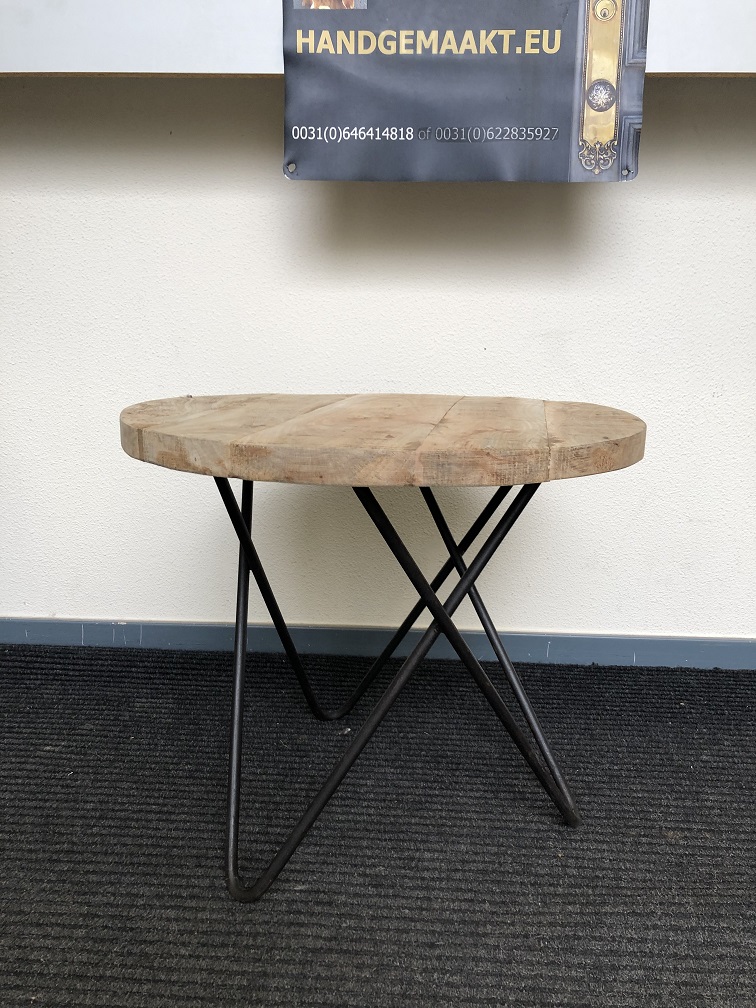 Prachtig mooi hardhouten sierlijk tafeltje, industrie look met V poot, zeer fraai!