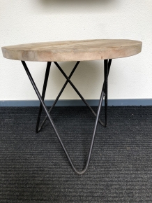 Tafeltje met hardhouten blad op smeedijzeren V poot, prachtig!