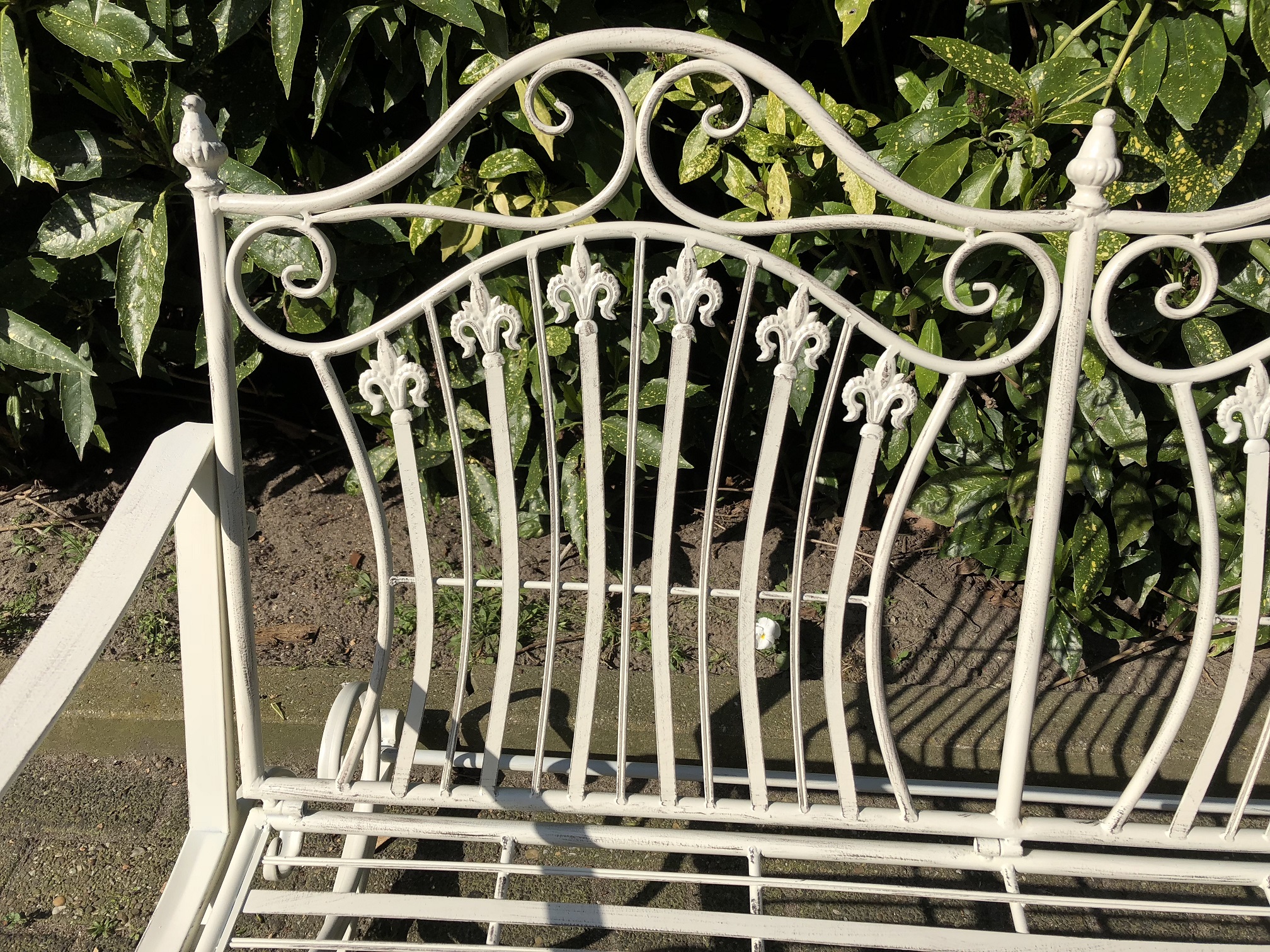 Prachtige vol smeedijzeren schommelbank- old white, echt een eye-catcher!!
