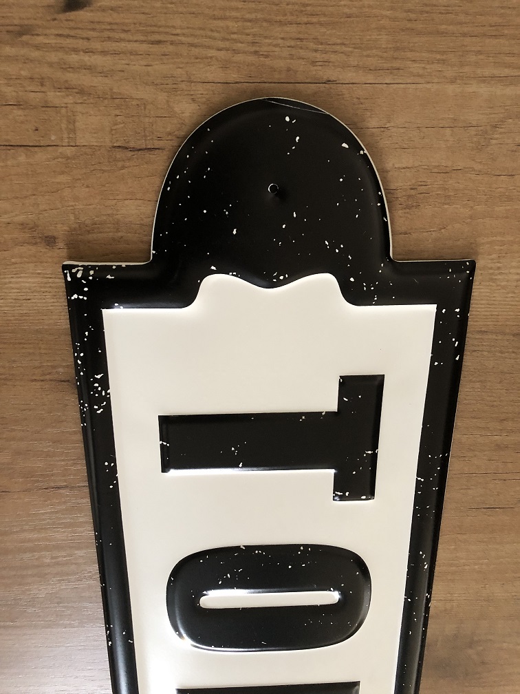 Mooi metalen bord in old look met duidelijk opschrift. Eenvoudig te plaatsen m.b.v. 2 schroefjes L en R.