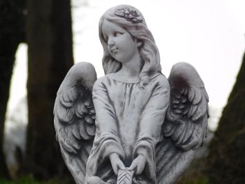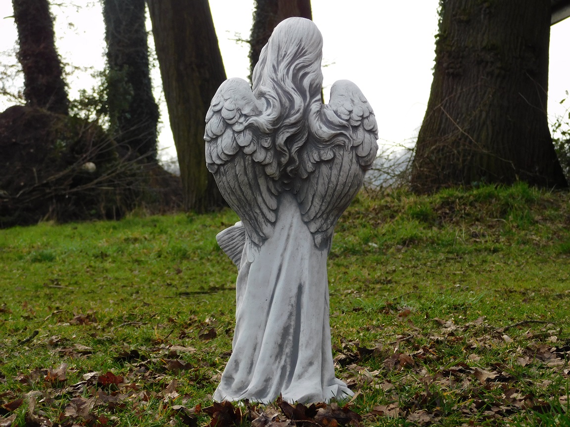 Dit prachtige stenen beeld van een engel straalt zachtheid en vreugde uit.