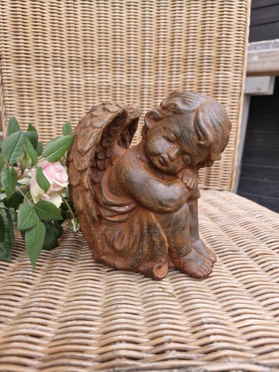 Het beeld heeft een roestige look , net of het gietijzer is maar