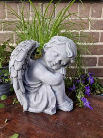 Een fraai beeld om in de tuin, of in huis, als decoratie te hebben staan. Dit beeld brengt rust en sfeer in haar omgeving, ook een waardig beeld om bijvoorbeeld op een graf te plaatsen. Mooi vervaardigd uit steen.