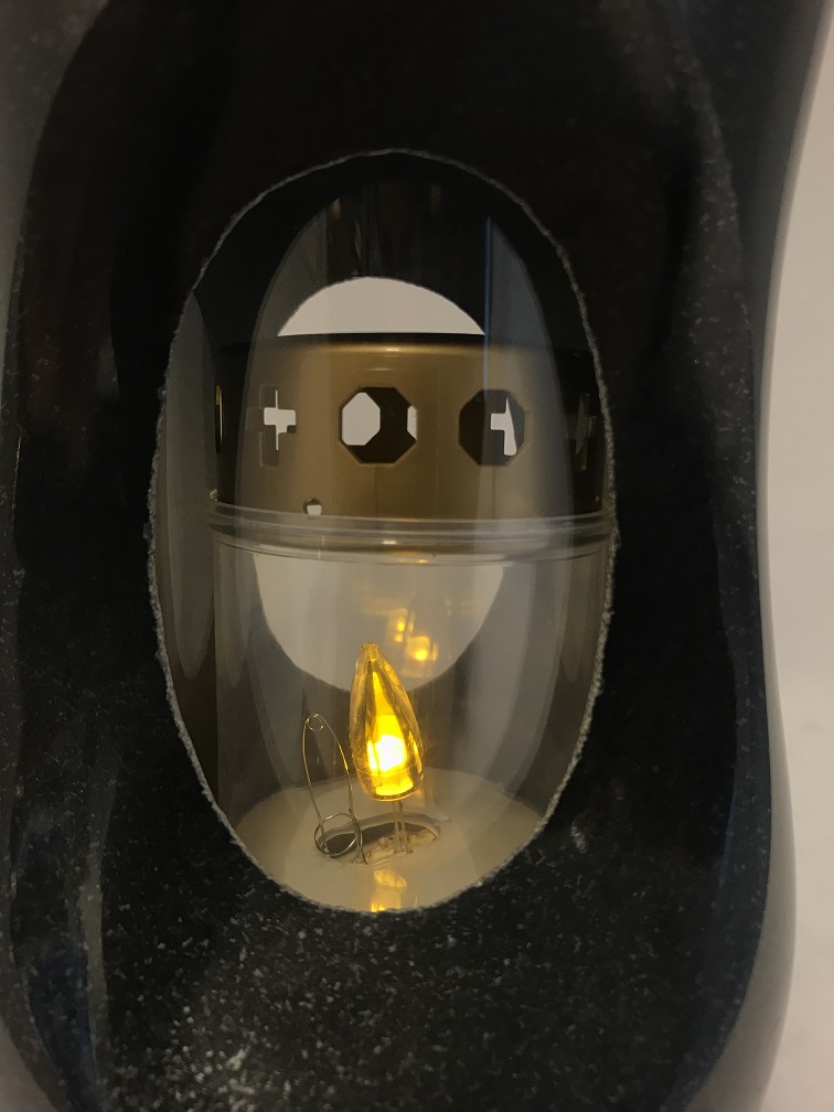U kunt bij deze graflamp ook een lichtje (zie foto 5, 6 en 7) krijgen, die precies in de lantaarn past. Dit is ook een fraai lampje die de lantaarn extra tot haar recht laat komen (dit lampje brandt circa 50 dagen). Ook hier kunt u voor kiezen in het menu die bij de prijs staat.