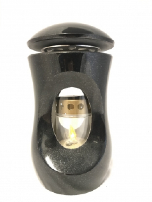 De graflamp is gemaakt van graniet en heeft aan de binnenzijde een glazen omhulsel waar u een lampje of kaars in kunt doen.