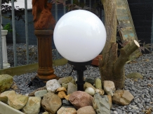 Buiten prikspot lamp bol- zwarte steek, witte bol.